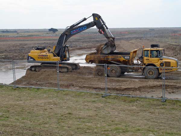 Excavating the material for the new secondary sea defence.