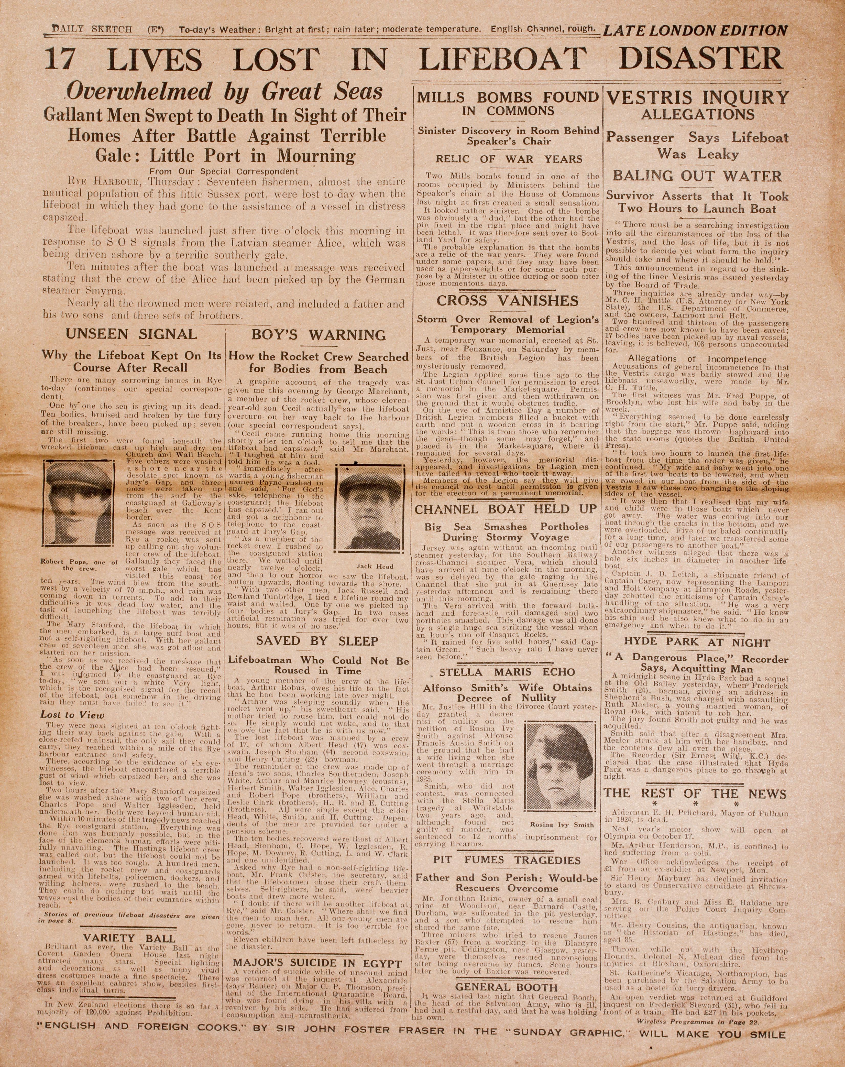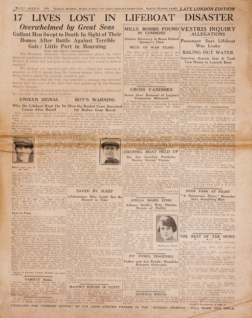 Janet Webb has supplied these newspapers dated the day after the Mary Stanford Lifeboat disaster.You can read the text by clicking on the larger version button.